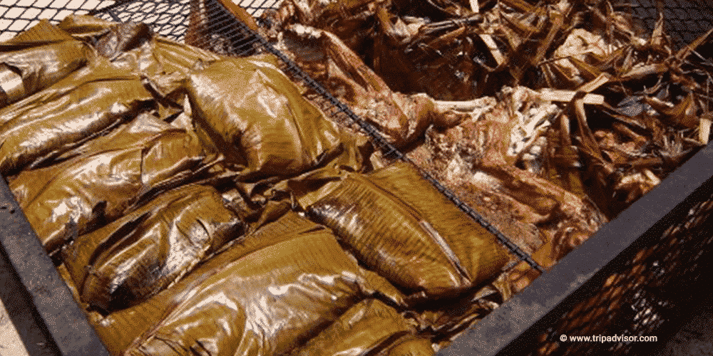 A l’époque où il n’y avait ni gazinière, ni fours modernes, ni compteur EDT Engie pour faire la popote, les anciens Polynésiens préparaient le ma’a (la nourriture) dans le four traditionnel tahitien, le ahima’a, qui permet une cuisson à l’étouffée. A quoi ça ressemble ? A un grand trou creusé dans la terre (pouvant aller jusqu’à un mètre de profondeur). La technique de préparation du four est la même que pour le gratin dauphinois de belle-maman : on procède par couche. Au fond, du bois et de la bourre de coco comme combustible. Par-dessus, on dépose des pierres volcaniques, qui vont devenir incandescentes lorsqu’elles seront chauffées. On place ensuite un tapis végétal sur lequel on met les aliments à cuire (enveloppés dans des feuilles de bananier façon papillote ou mis en cocotte). On recouvre le tout de feuilles de purau tressées, de bananier ou de sacs de coprah. Et hop ! Il ne reste plus qu’à fermer le four tahitien avec une couche de terre ou de sable pour qu’il reste hermétique. Hé, avouez que c’est autre chose qu’un simple jeté de chipos sur un barbecue, non ? Par contre, côté préparation, faut reconnaître que c’est pas la même : entre le temps de préparation du four et les 4 à 6 heures de cuisson… Autant vous dire que l’on ne se lance pas là-dedans à 1h de passer à table mais dès la veille au soir !